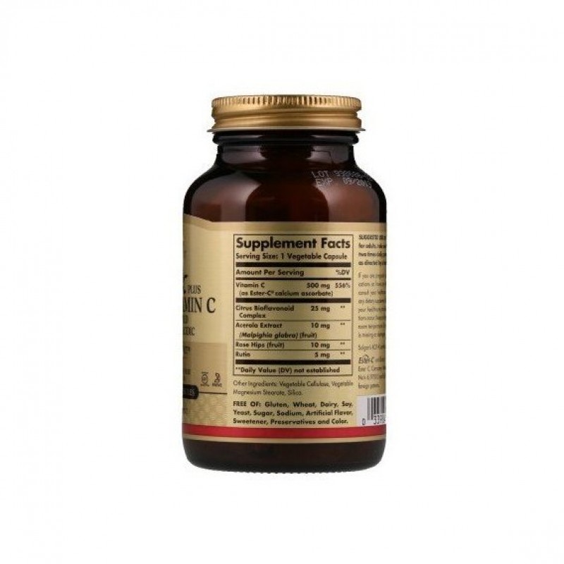 Витамин C сложноэфирный (Ester-C Plus) разработан исключительно Solgar для обеспечения запатентованным, рН нейтральным (не кислотным) витамином С, который хорошо усваивается организмом. Метаболиты витамина С в Эфир-C оказывают положительное влияние на усвоение и удержание витамина С в клетках, обеспечивая дополнительные преимущества. Для формирования уникального комплекса метаболитов аскорбат кальция используется особый производственный процесс. Этот хорошо усвояемый комплекс включает в себя природные биофлавоноиды и ацеролы, наряду с фруктовым порошком шиповника, обеспечивающего положительную антиоксидантную защиту и активную поддержку иммунной системы.