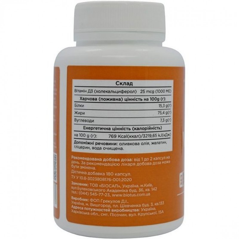 Витамин D Biotus Vitamin D3, 1000 ME 180 Caps BIO-530067