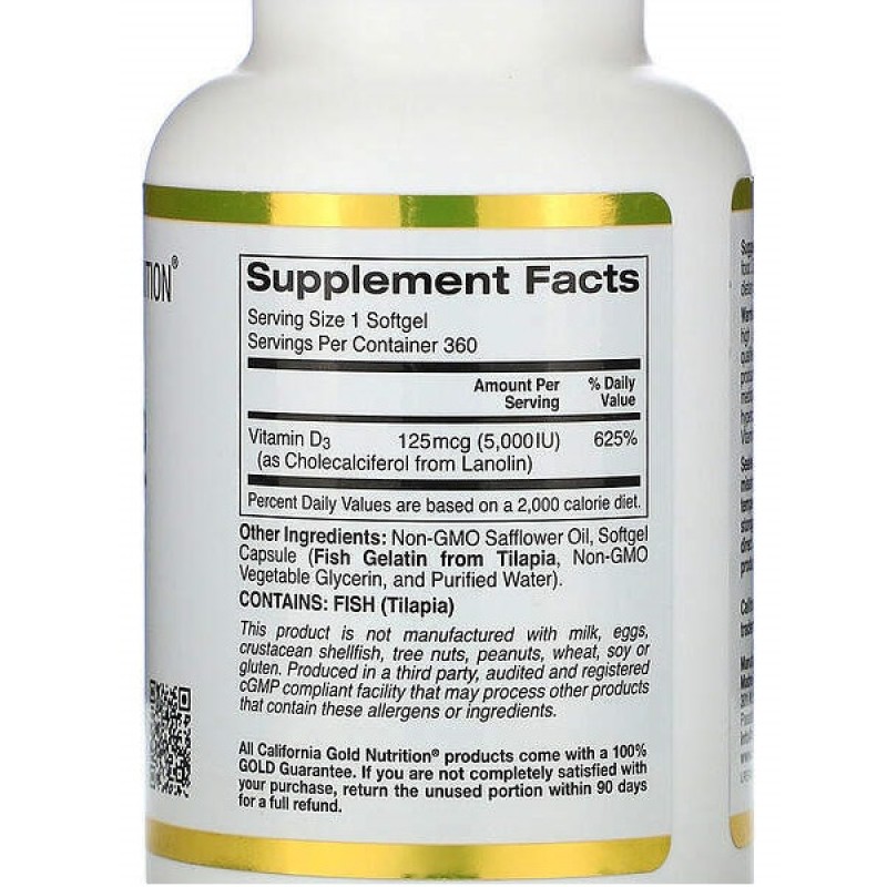 Витамин D California Gold Nutrition Vitamin D3 5000 IU 360 Fish Softgels