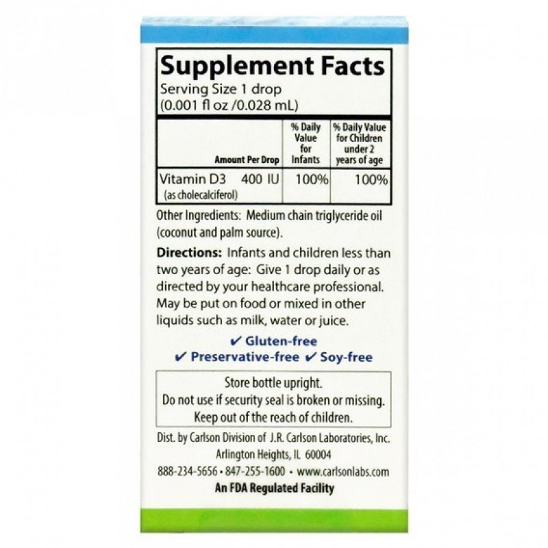 Витамин D играет важную роль в общем состоянии здоровья, но не все получают достаточное его количество вместе с солнцем. Детский Super Daily D3 от Carlson предоставляет вам натуральный витамин D3 в безопасной, быстрой и удобной форме. Всего одна капля детского Super Daily D3 от Carlson обеспечит вас 400 МЕ концентрированного жидкого витамина D3.