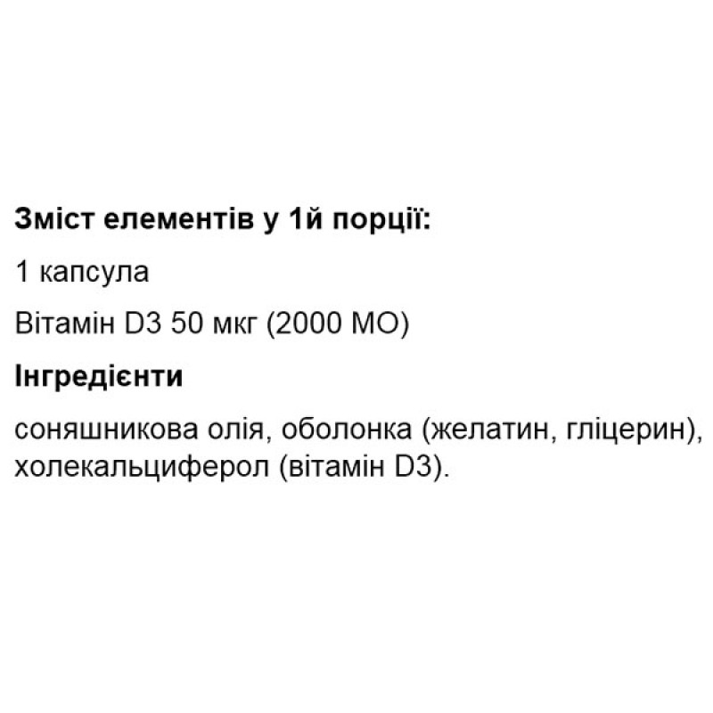 - Содержит 50 мкг (2000 МЕ) витамина D3 в каждой капсуле.