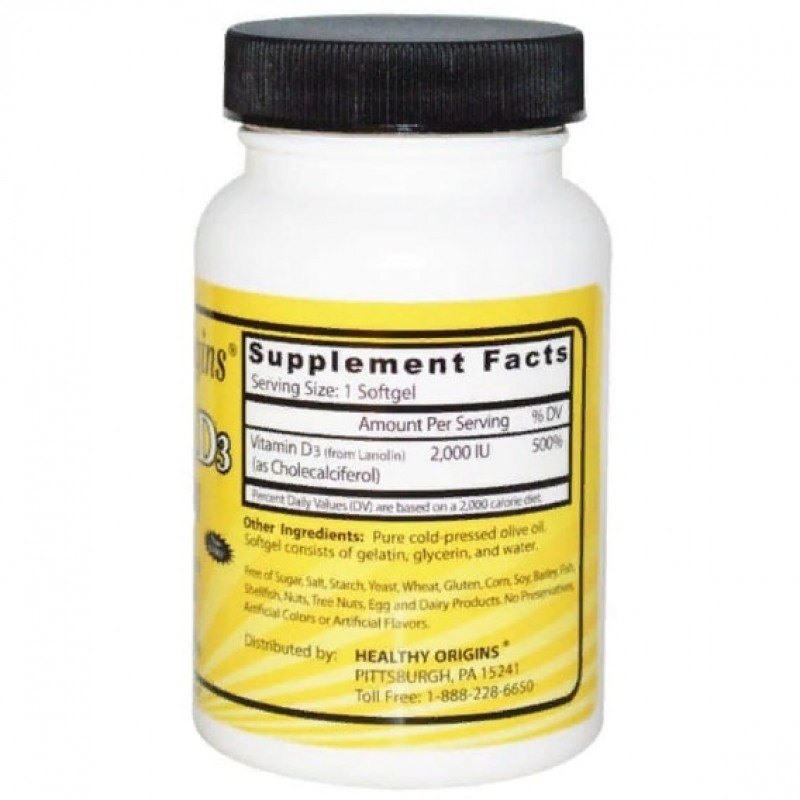 Витамин D – жирорастворимый витамин, поэтому стоит отдать предпочтение капсулам, которые имеют маслянистую основу. Витамин Д3 от компании Healthy Origins, производиться из высокоочищенного ланолина, поэтому его стоимость несколько бюджетней чем аналог из рыбьего жира. D3 также называют солнечным витамином, поскольку наш организм способен синтезировать его в процессе приема солнечных ванн. Но с возрастом, организм теряет такую возможность, поэтому его стоит принимать дополнительно. Доктора рекомендуют принимать Д3 сразу же после завтрака.