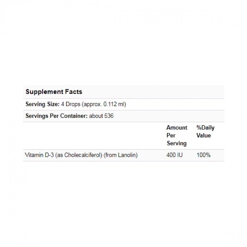 Каждая капля содержит 100 МЕ витамина D, в 4 каплях содержится 400 МЕ, в 20 каплях содержится 2000 МЕ.