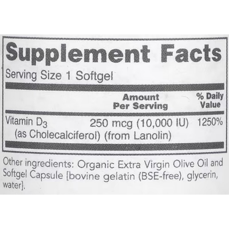 Формула с дозировкой 10 000 МЕ подходит для тех, кто нуждается в значительном восполнении уровня витамина D3 в организме. Этот продукт является простым и удобным решением для поддержки нормального уровня витамина D3 в организме.