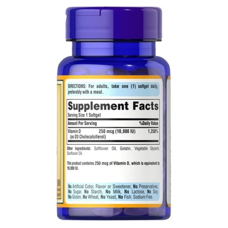 Puritan's Pride Vitamin D3 10000 IU - наиболее мощная и активная форма витамина D.