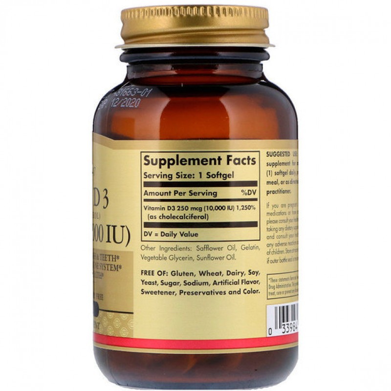 Витамин D необходим для улучшения усвоения кальция, который отвечает за здоровье костей и зубов. Витамин D также поддерживает здоровье иммунитета и нервно-мышечной функции. Витамин D3, содержащийся в данном продукте, по форме аналогичен витамину D3, который выделяется в коже при воздействии солнечного света. С возрастом наш организм хуже поглощает этот важный питательный элемент. Эта формула содержит витамин D3 в масляных мягких таблетках для оптимального усвоения.