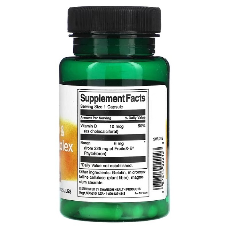 Теперь существует комплекс для здоровья костей, также поддерживающий здоровье суставов. Ультракомплекс с витамином D и бором Swanson содержит 400 МЕ витамина D и 6 мг бора из FruiteX-B® PhytoBoron, запатентованной пищевой формы бора с чрезвычайной биодоступностью.