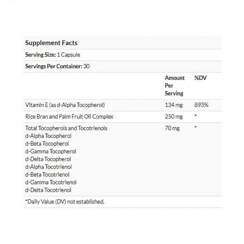 Этот препарат содержит натуральный витамин E в форме d-альфа токоферола, смесь витаминов Е, включая d-гамма токоферол, d-дельта токоферол и d-бета токоферол. Предлагается в желатиновых капсулах на основе масла для содействия оптимальному всасыванию и усваиванию.