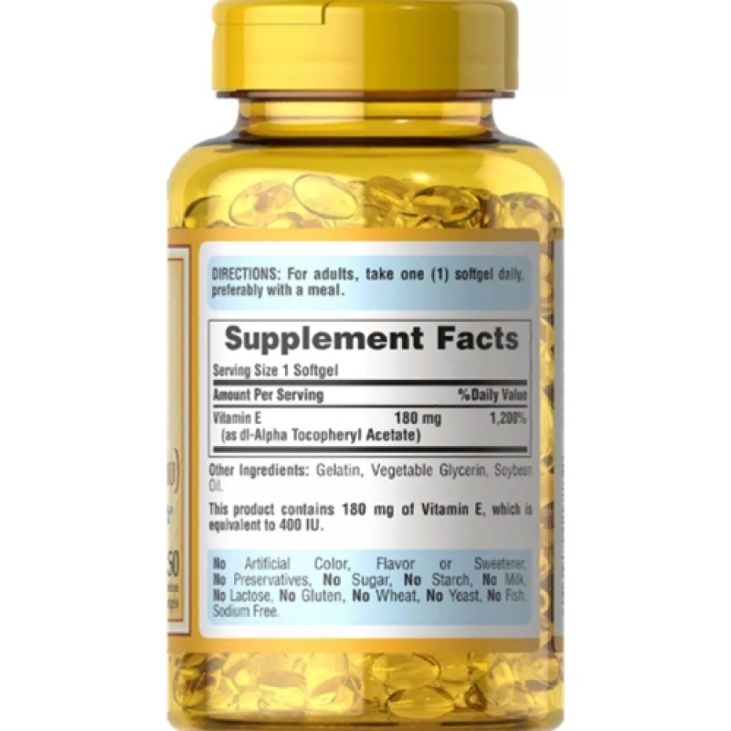 Puritans Pride Vitamin E-400 IU не содержит искусственных красителей, ароматизаторов и консервантов. Кроме того, в состав не входят сахар, крахмал и лактоза.