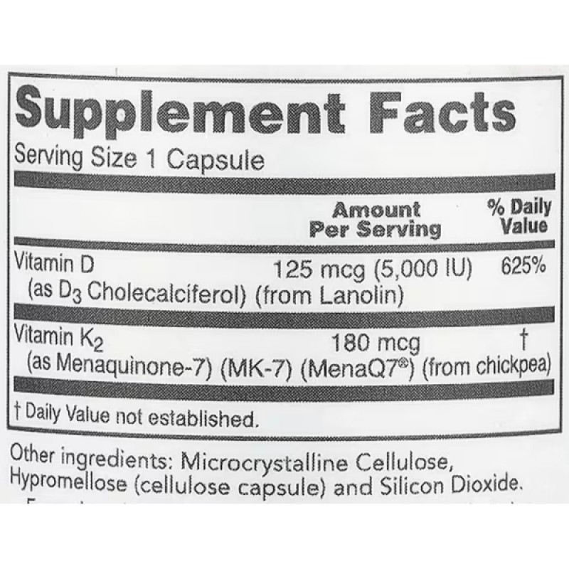 Исследования показывают, что витамин K2 и витамин D3 действуют синергетически, особенно способствуют прочности костей и здоровью сердечно-сосудистой системы.