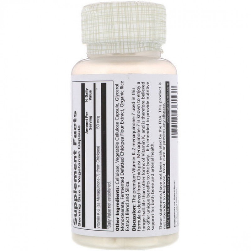 Премиальный витамин K-2 в форме менахинона-7, содержащийся в данной формуле, получают из нута. Менахинон-7 обладает большей устойчивостью по сравнению с другими формами витамина K, и, как считается, оказывают более выраженное благоприятное воздействие на организм. Продукт предназначен для питательной поддержки здоровья костей и артерий.
