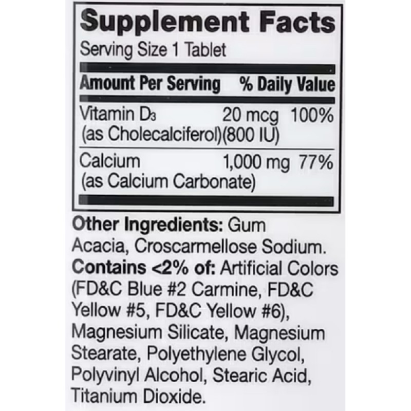 Calcium Plus D3 от 21st Century содержит 1000 мг кальция и 800 МЕ витамина D3 в каждой таблетке. Добавка подходит как для дополнения рациона во время повышенных физических нагрузок или диеты, так и для предотвращения потери костной массы или ускорения восстановления после переломов.