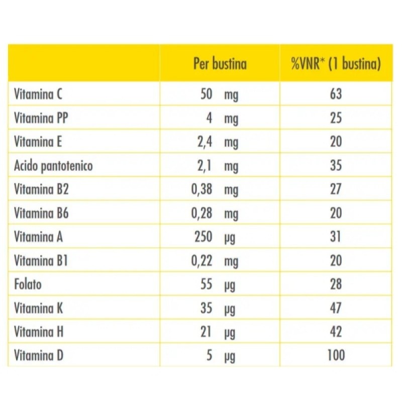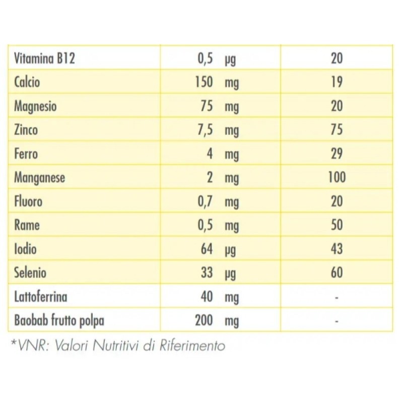 Vitformula IMMUNO содержит лактоферрин, белок, который в нашем организме участвует в различных функциях, мякоть плодов баобаба, которая поддерживает естественную защиту организма и хорошую функциональность верхних дыхательных путей, а также комплекс из 13 витаминов и 9 минералов, в том числе витамины B2, C, E и медь, которые способствуют защите клеток от окислительного стресса, и витамины A, B6, B12, C, D, медь, фолиевую кислоту и цинк, которые поддерживают правильное функционирование иммунной системы.