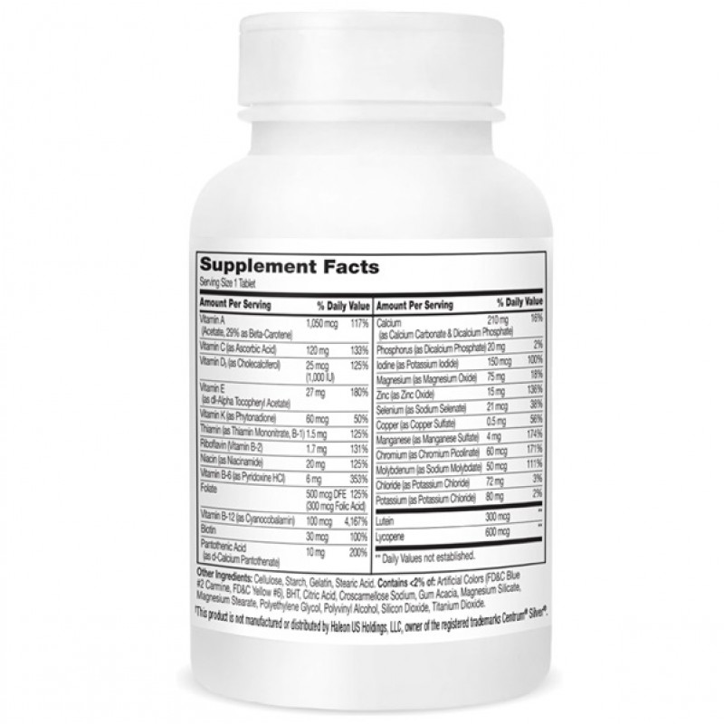 - Сравните активные ингредиенты с составом препарата Centrum Silver Men 50+