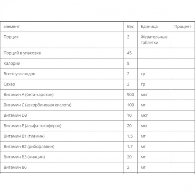 Принимать детям от 3 лет по 2 жевательные таблетки в день.