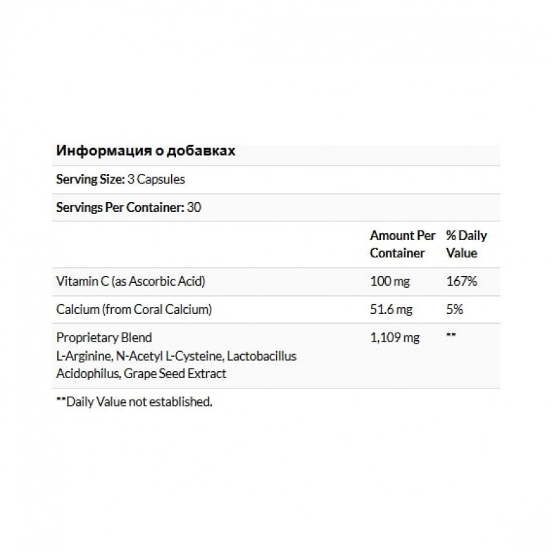 Растительная капсула (гипромеллоза), микрокристаллическая целлюлоза, стеарат магния, диоксид кремния.