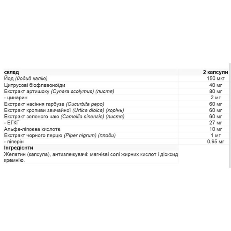 - Растительные экстракты: В состав комплекса входят экстракты растений, такие как артишок, крапива, тыква и зеленый чай, которые могут обладать дополнительными полезными свойствами для организма.