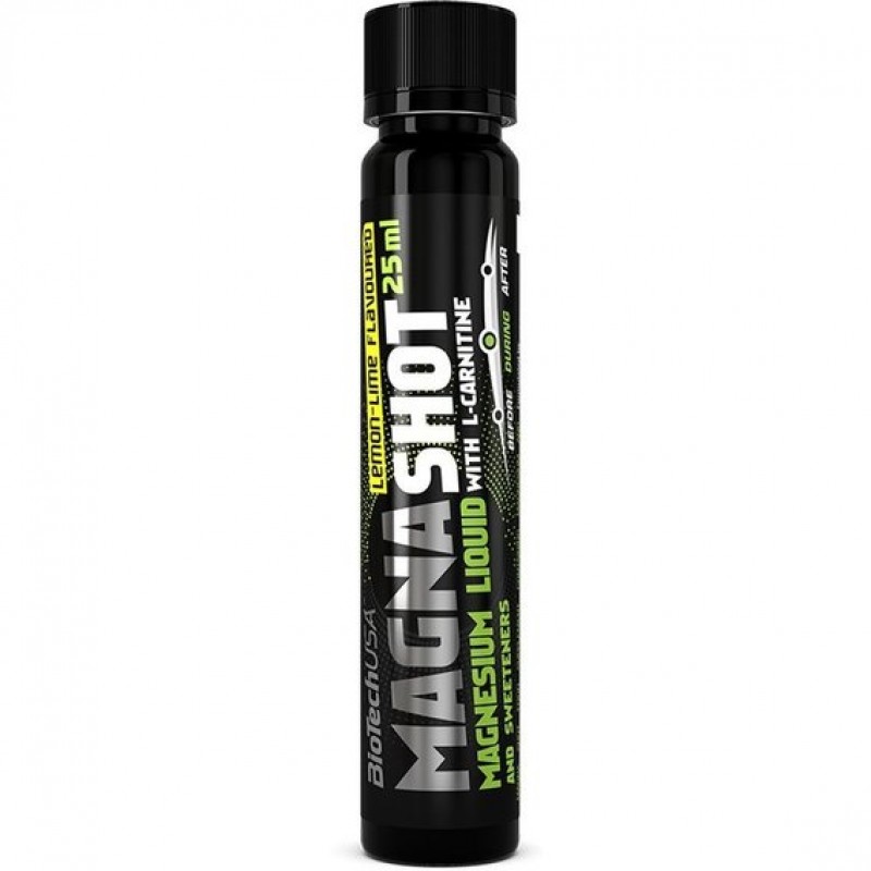 Magna shot - препарат в жидкой форме для снижения усталости мышц от Biotech, обогащен магнием, витамином B6, экстрактом зеленого кофе и L-карнитином.Магний – минерал, который жизненно важен для организма. Этот элемент, как и калий, содержится во всех клетках тела. Так как магний не может быть незаменим другим элементом, а организм человека не умеет его вырабатывать, то необходимо правильное употребление минеральных веществ.