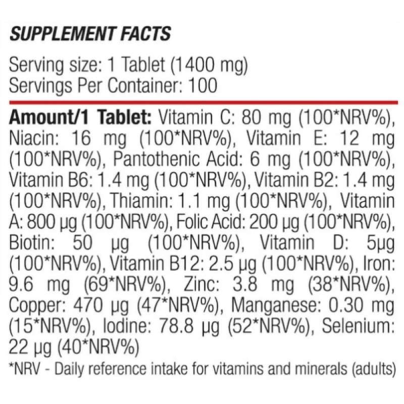 Daily1 Multivitamin от Blade Sport – это специально разработанный для спортсменов витаминно-минеральный комплекс, созданный для удовлетворения повышенных потребностей активных людей. Добавка содержит все необходимые компоненты для поддержания высокого уровня энергии и общего тонуса.