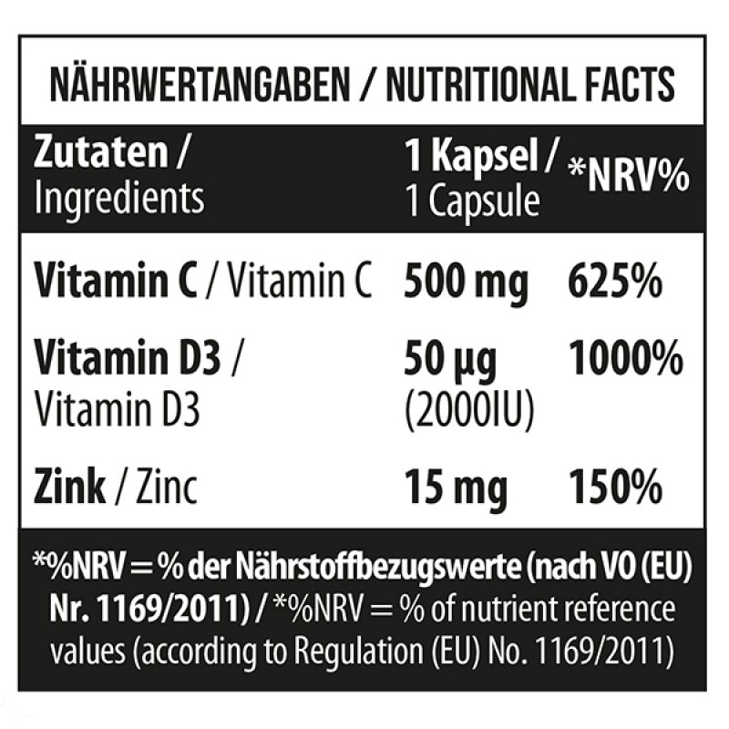 - одна таблетка содержит суточную норму цинка, витамина C и витамина D3;