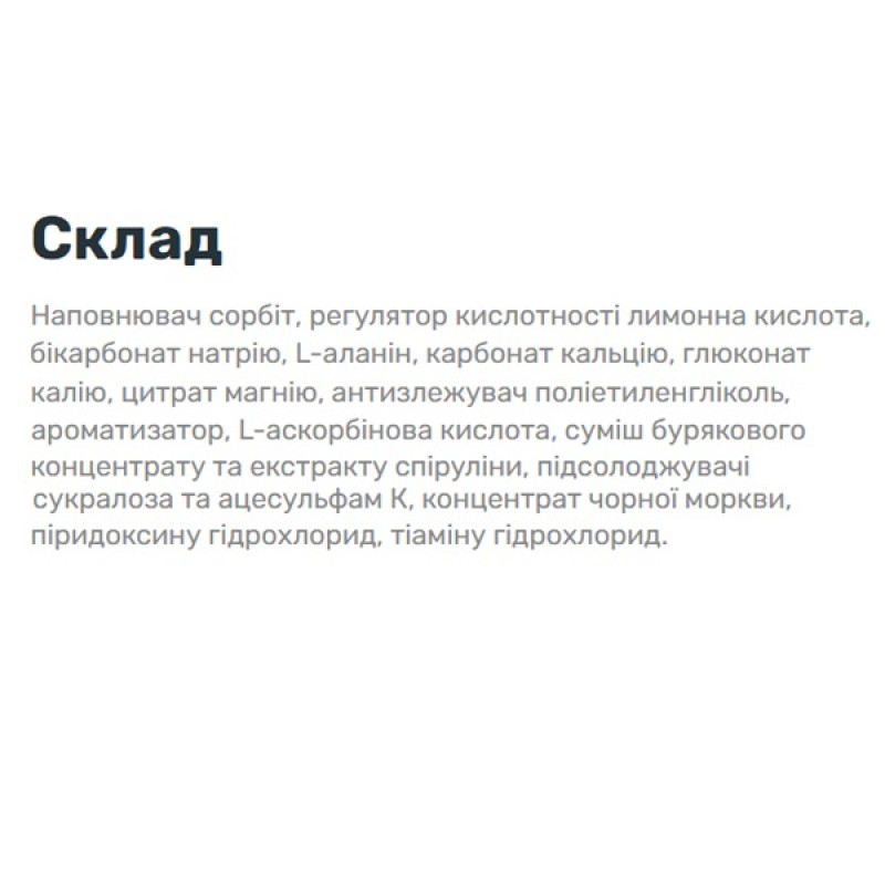 Растворить 1 таблетку в 500 мл воды. Пейте во время занятий спортом. Максимум 2 таблетки в день. Не превышайте рекомендуемую дозировку.