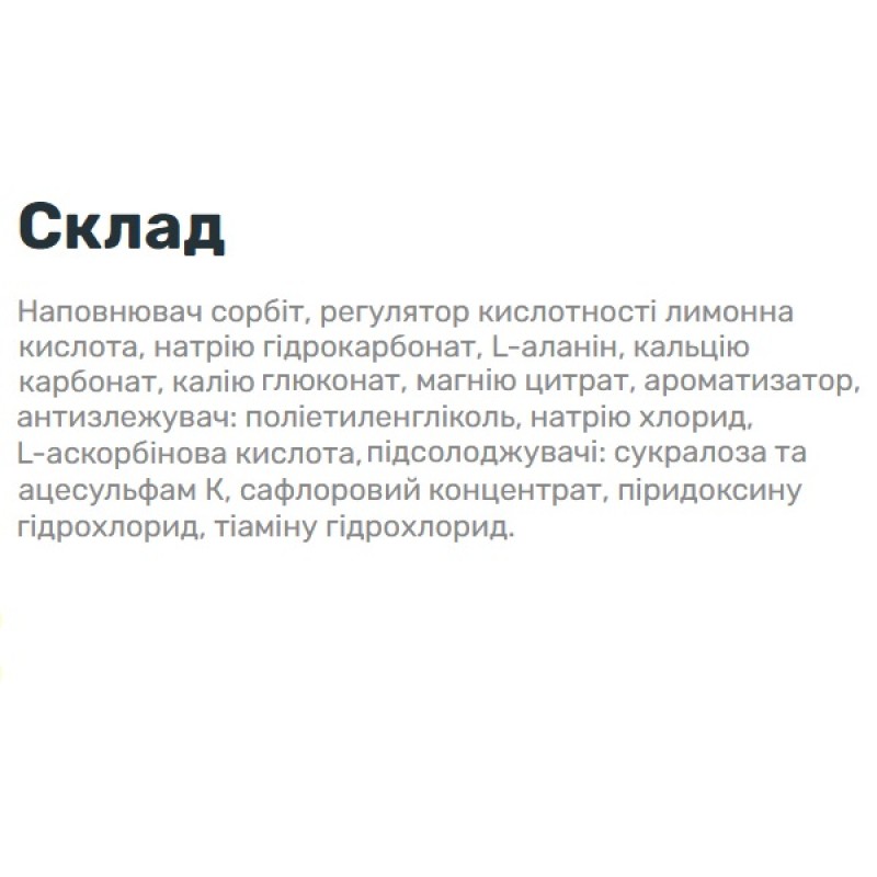 Растворить 1 таблетку в 500 мл воды. Пейте во время занятий спортом. Максимум 2 таблетки в день. Не превышайте рекомендуемую дозировку.