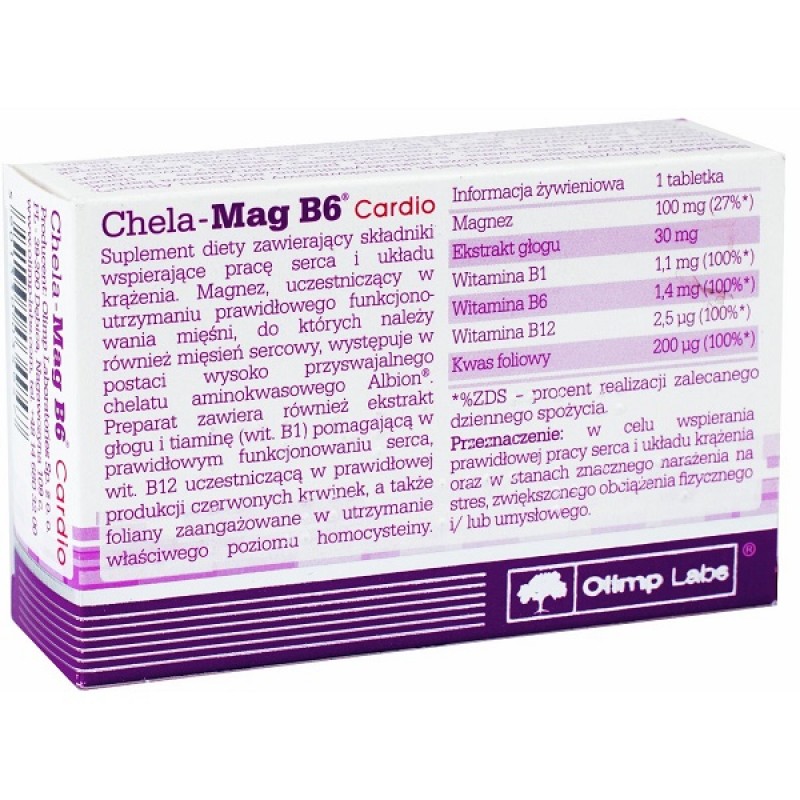 Olimp Chela-Mag B6 Cardio это пищевая добавка, которая содержит ингредиенты, чтобы поддержать работу сердца и кровеносной системы.