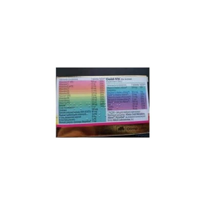 Olimp Gold-Vit for Women является комплексом витаминов и минералов представленных в форме хелатов аминокислот Albion®, что делает его отличным средством для покрытия своих потребностей в основных микроэлементах. Формула была дополнена изофлавонами сои, экстрактом зеленого чая, гиалуроновой кислотой и диосмин, а также Bioperine® экстрактом черного перца.