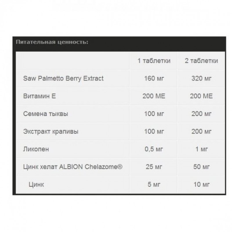 Prostatan - специально подобранный комплекс растительных экстрактов и хелата цинка, обеспечивающих правильную работу предстательной железы (простаты). Его основой являются натуральные биологически активные компоненты, такие как пальмовый экстракт, экстракт семян тыквы, экстракт крапивы и ликопен.
