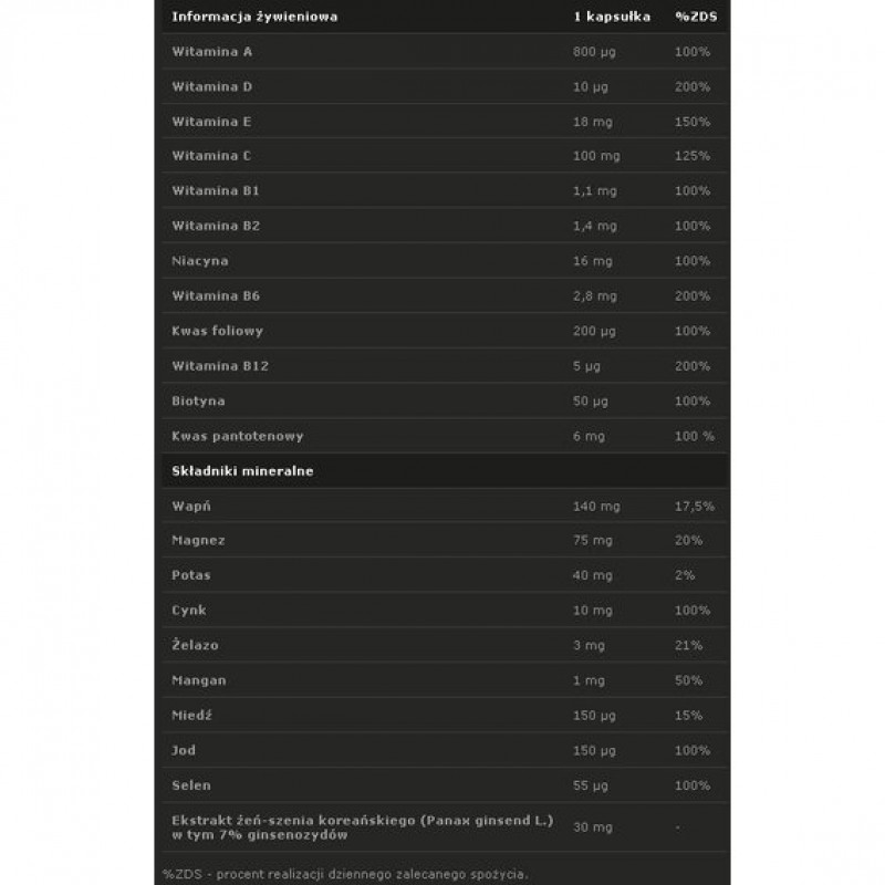 Vita-Min Plus Senior Olimp - витаминно-минеральный комплекс для мужчин, дополнительно обогащенный экстрактом корня женьшеня и лютеином. Комплекс разрабатывался для пожилых людей, организм которых остро нуждается в дополнительной подпитке микроэлементами и витаминами, но быстро был оценен спортсменами, которые также - хоть и по другим причинам - должны потреблять эти вещества в повышенных дозах. Для восстановления после занятий спортом и повышения работоспособности во время тренировок.