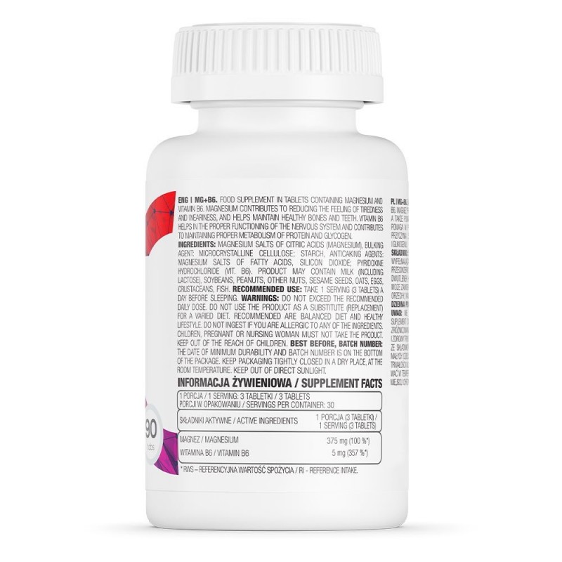 Препарат кроме магния содержит витамин В6. Он оказывает позитивное влияние на нервную систему, а также обменные процессы в организме. Его наличие в добавке способствует отличному усвоению магния (на 20% больше), а также улучшает его транспортировку в мембраны клеток. Еще одно преимущество потребления витамина В6 — дополнительная защита организма от вредных последствий депрессий и стрессовых ситуаций. Это вещество также участвует в энергосберегающих процессах в клетках мышц.