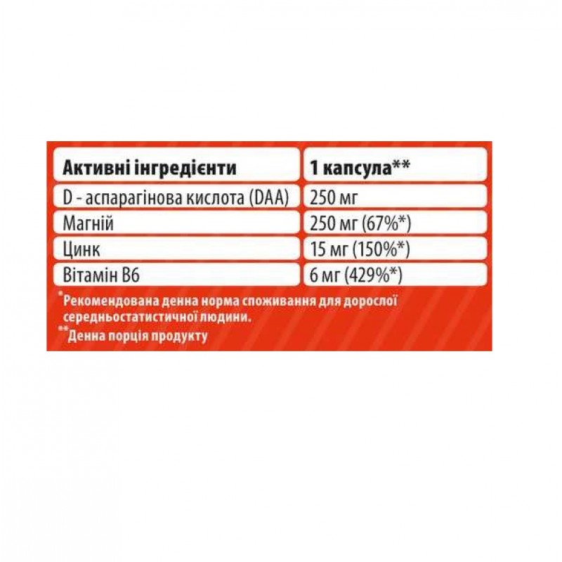 · 250 мг D-аспарагиновой кислоты;