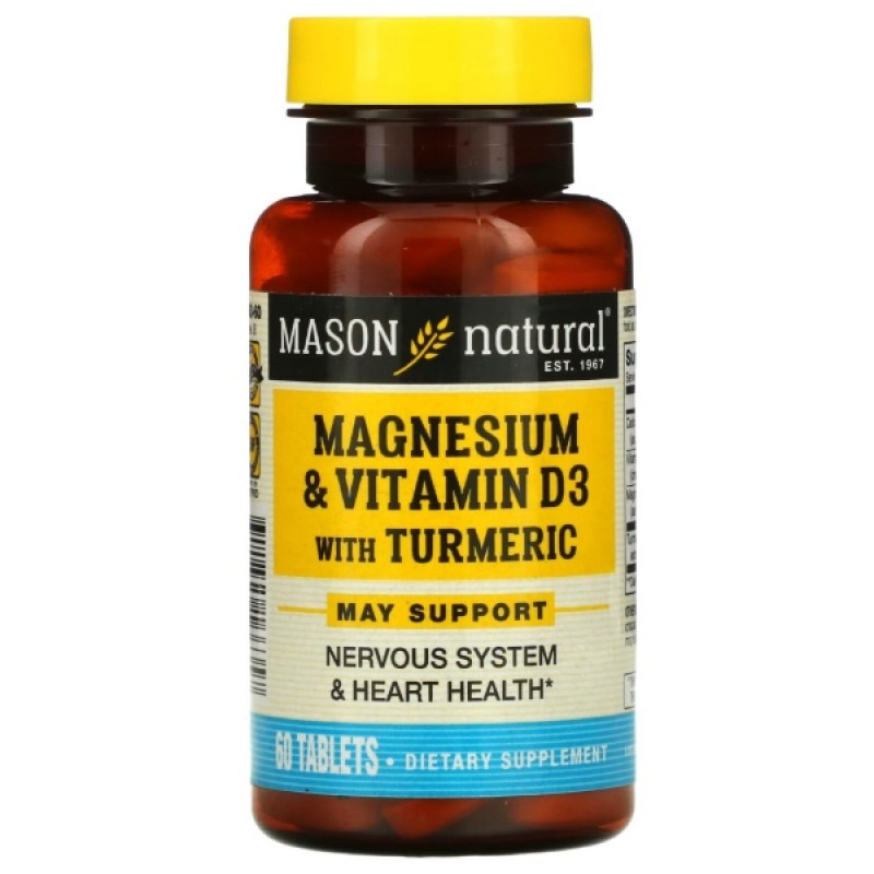 Mason Natural Magnesium & Vitamin D3 With Turmeric для хорошего самочувствия и нормального функционирования организма.