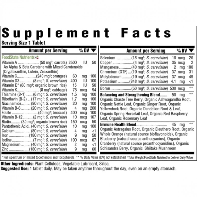 Витамины для женщин (Multi for Women) - характеризуется, как комплексная пищевая добавка, содержащая мультивитамины и минералы, а также коричневый рис, морковь, брокколи и апельсин для женщин всех возврастов; поддерживает здоровье, долголетие и благополучие; кошерный и вегетарианский продукт; без молока, без ГМО, без глютена сертифицированный NSF. Multi for Women - содержит важные вещества, которые хорошо влияют на настроение, физическое и психическое состояние, внешний вид и физическое здоровье. FoodState Iron восполняет уровни, теряемые во время меструации, а витамины группы В FoodState помогают натуральному и здоровому производству энергии.