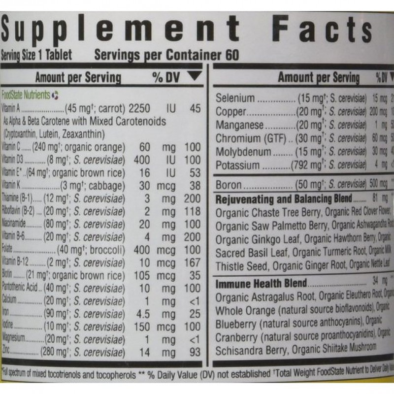Мультивитамины для женщин (Women Over 40 One Daily) состоит из 100% натуральных ингредиентов, которые были подвергнуты минимальной обработке.