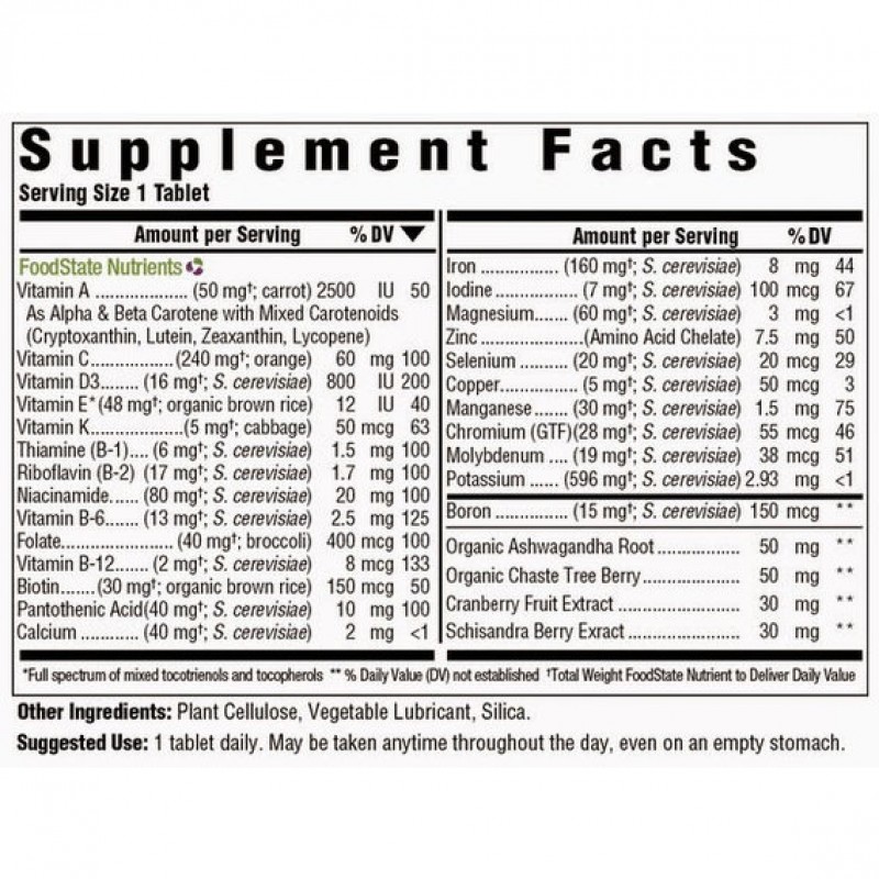 Витамины для женщин, Womens One Daily, MegaFood - это продукт, который содержит натуральные травы, витамины и минералы, необходимые для женщин. Препарат представляет собой смесь 25 витаминов и минералов, а также экстрактов из апельсин, клюквы, ягод, элеутерококка и астрагала, который укрепляет общее здоровье. В составе продукта также цветы красного клевера, куркума, женьшень, семена расторопши, органические грибы шиитаке и ягоды лимонника. Сбалансированный для женского здоровья продукт укрепляет сердечно-сосудистую систему, повышает физическую выносливость, помогает управлять ежедневным стрессом. Ингредиенты способствуют нормализации гормонального фона (усиливают овуляцию), поддерживают мочеполовую систему, обеспечивают антиоксидантную защиту. 100% натуральные продукты поддерживают здоровый и сияющий вид, а также нейтрализуют действие свободных радикалов и способствуют их выведению из организма, продляют молодость. При ежедневном приеме мультивитаминных комплексов, как правило, восстанавливается обмен веществ в организме, уходит усталость, повышается иммунитет. MegaFood является пионером в индустрии натуральных продуктов и первой компанией, производящей витамины с нуля, с свежими целыми продуктами. Продукты и ингредиенты тестируются 3 раза в течение всего процесса производства, чтобы убедиться, что все соответствует строгим стандартам чистоты.