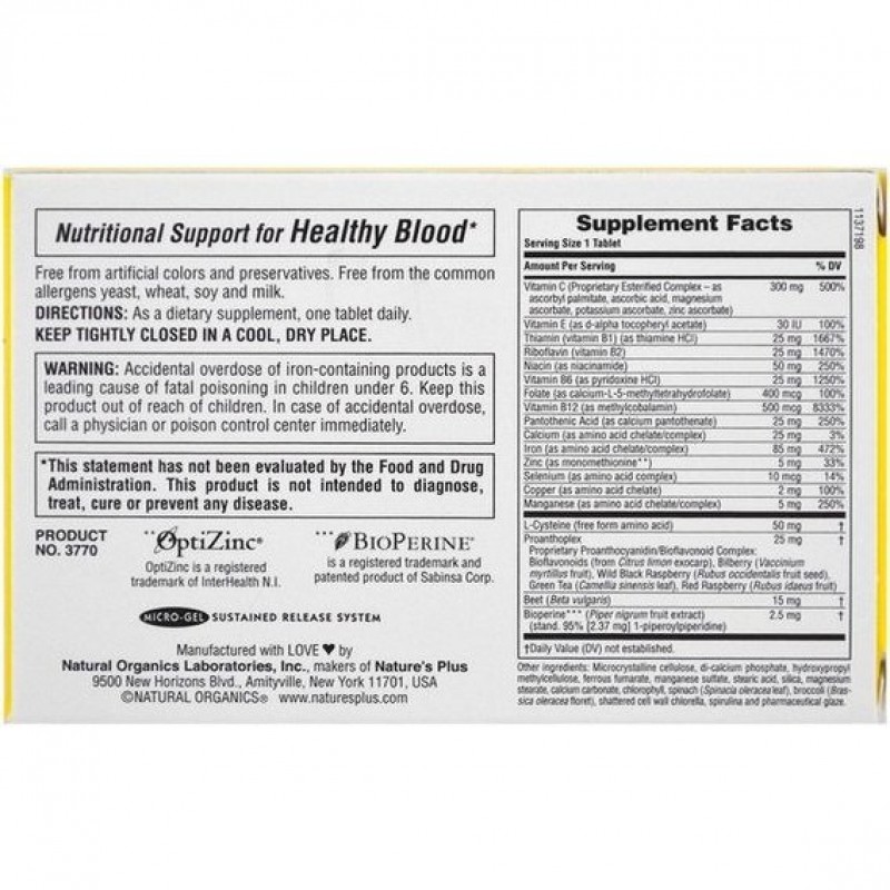 Комплекс витаминов и минералов, Hema-Plex, Nature's Plus - это таблетки, содержащие смесь основных витаминов и минералов.