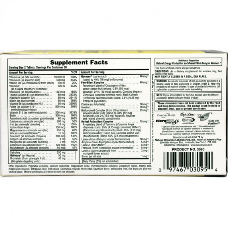 Спирулина — один из идеальных цельных природных продуктов, который поможет поддержать ясность ума. Хелатные аминокислоты - для оптимальной питательной поддержки здоровой крови. Женщины, которые придерживаются здоровых диет с адекватным объемом фолата, могут снизить риск врожденных дефектов головного или спинного мозга. В состав также входит комплекс Fem-Effect, стандартизированная смесь трав, которые использовались сотни лет для удовлетворения особых потребностей женщин: витекс священный, тернера раскидистая, дягиль лекарственный и клопогон кистеносный.