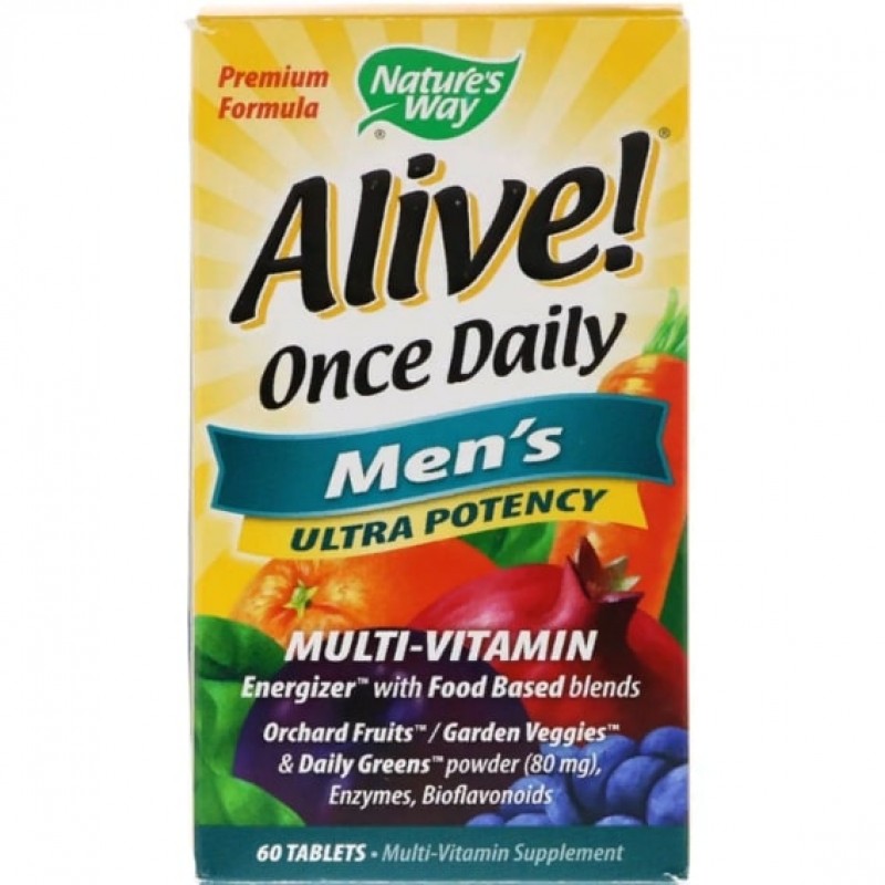 Комплексные мультивитамины Alive! с разнообразными питательными веществами на основе смесей экстрактов продуктов: