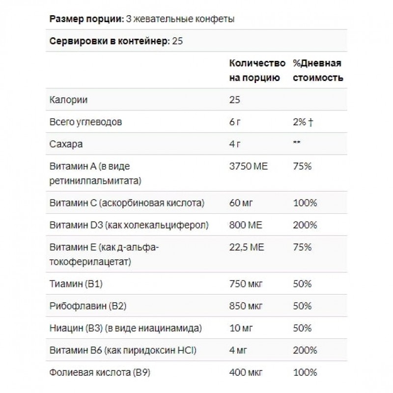 Взрослым употреблять по 3 жевательные конфеты ежедневно.