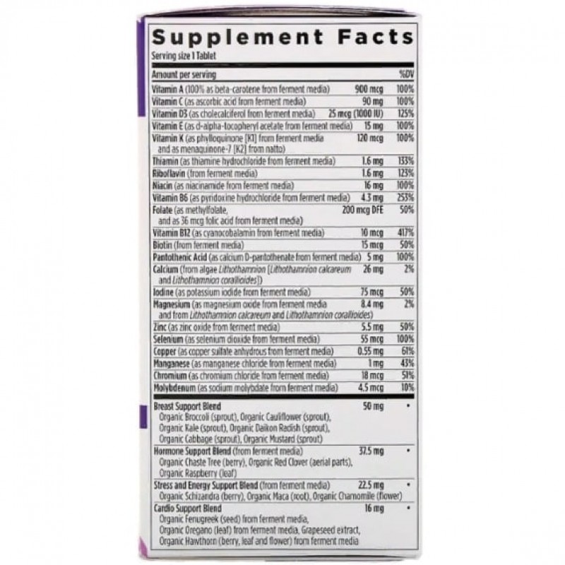 Продукт разработан экспертами для комплексной поддержки здоровья женщин старше 40 лет. Содержит питательные вещества для поддержки здоровья сердца, мозга, костей, груди, пищеварительной системы, волос, кожи и ногтей, а также для защиты от стресса.