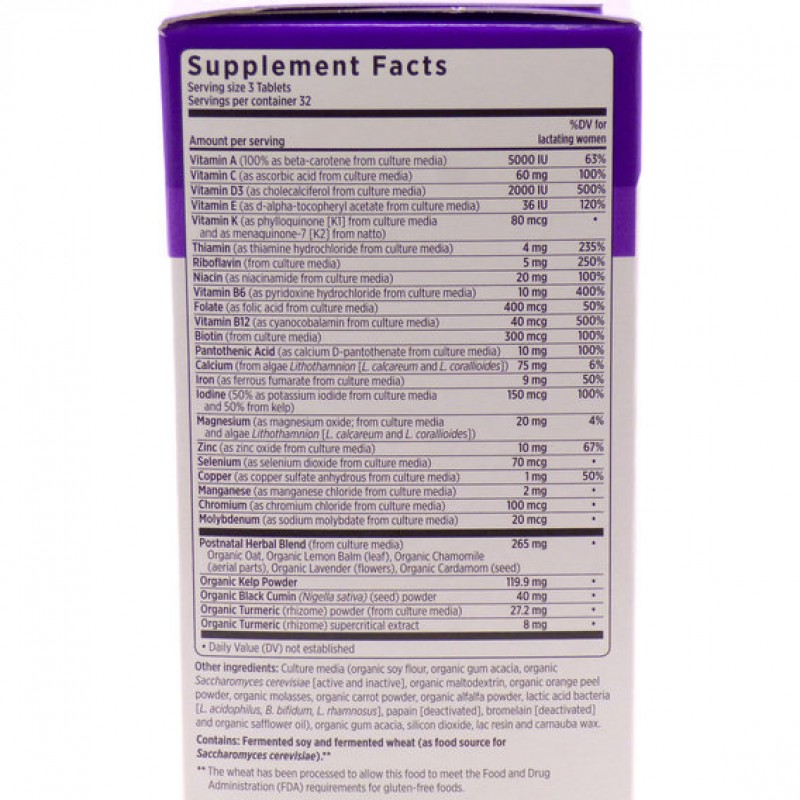 Питательные вещества для грудного молока- идеальный постнатальный мультивитаминный комплекс содержит витамины и минералы, рекомендованные для кормящих женщин, в том числе, железо, витамин B6, йод и витамин D3 из цельных продуктов.Питательные ингредиенты – для удовлетворения потребностей вашего организма после рождения ребенка формула Perfect Postnatal содержит полученное из цельных продуктов железо, необходимое для выработки красных кровяных телец, а также фолиевую кислоту.Энергия и улучшение настроения – витамины группы В из цельных продуктов поддерживают выработку энергии в организме на первых этапах материнства и кормления грудью, а последние исследования говорят о том, что ежедневный прием мультивитаминов может поддерживать хорошее настроение и бороться со стрессом и переутомлением.