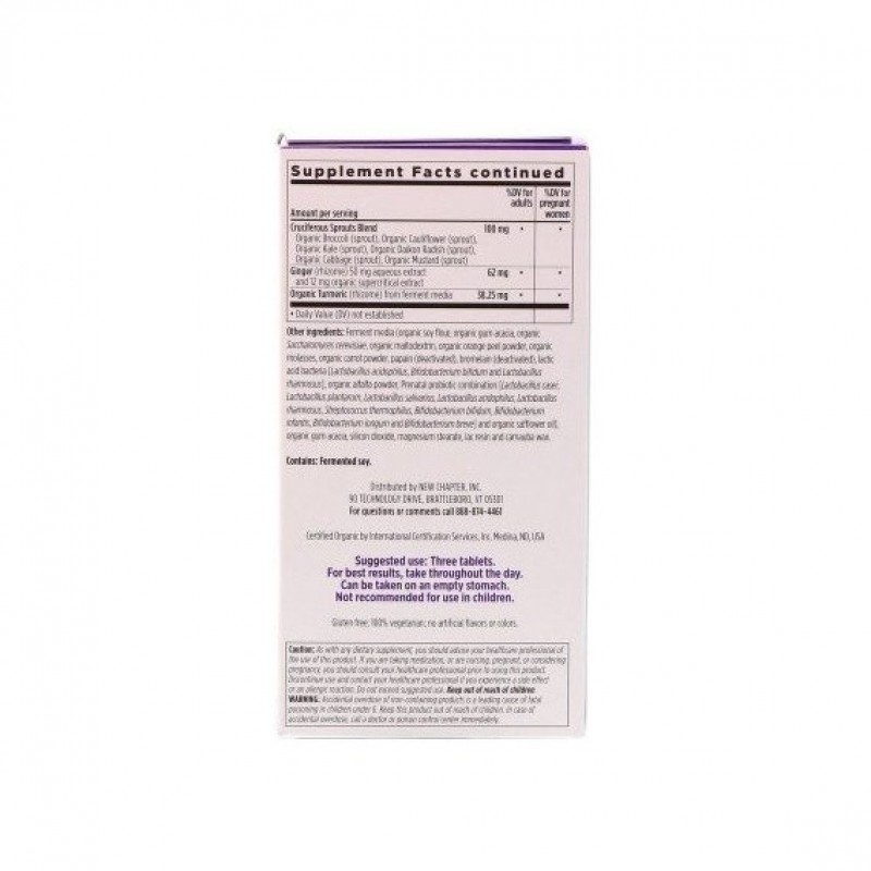 Смесь брокколи, капусты и прочих органических ростков крестоцветных поддерживает метаболизм эстрогена и здоровье груди. Комплекс предлагает полноценный курс на 32-дневный период вынашивания малыша. Цельный комплекс мультивитаминов для здоровой беременности и развития ребенка можно принимать в течении дня и даже на голодный желедок. Продукт сертифицированный International Certification Services органический, без использовангия ГМО, биодоступный и хорошо усваиваемый организмом.