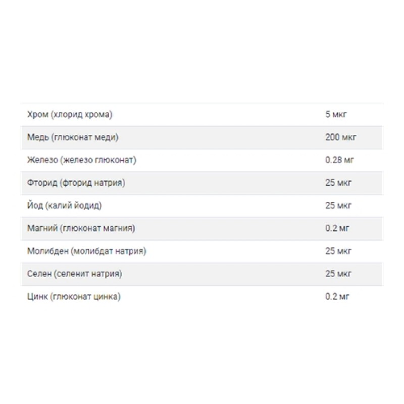 - Витамин D3 (в форме холекальциферола): 100 МЕ