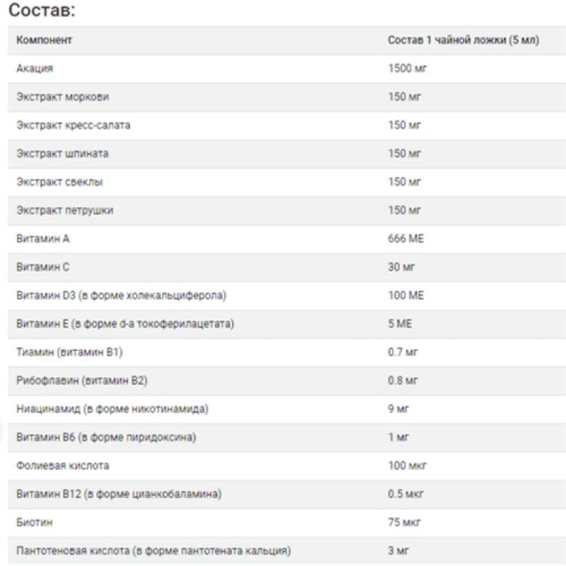 - Компонент: Состав 1 чайной ложки (5 мл)