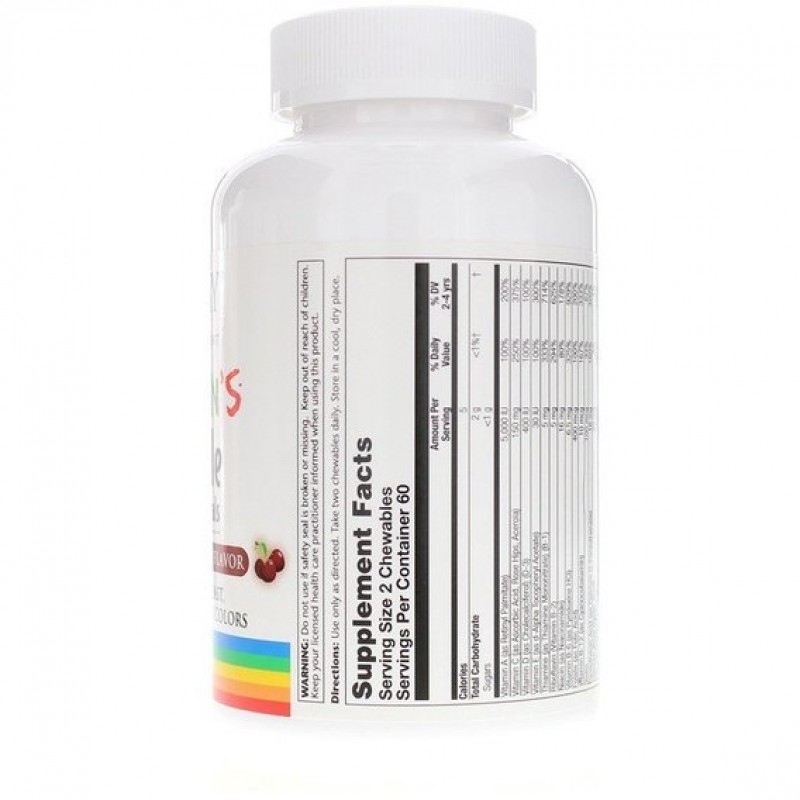 Мультивитамины для детей (Children's Chewable Vitamins Minerals), Solaray — это cбалансированный комплекс жевательных витаминов и минералов для детей со вкусом вишни, без дрожжей, без искусственных ароматизаторов или красителей.