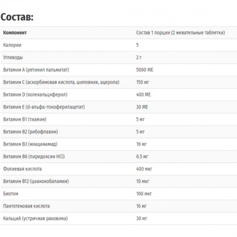 Принимать по 2 жевательные таблетки 1 раз в день.