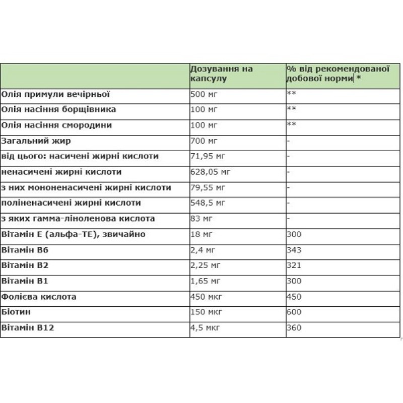 - участвует в синтезе фосфолипидов, простагландинов и некоторых гормонов, устраняет сбои гормональной системы, облегчает симптомы менопаузы, участвует в функционировании репродуктивной системы
