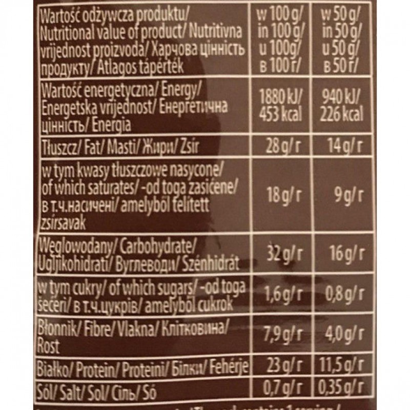 Содержит 25% белка высшего качества, с легкостью помогут дополнить дневную норму белка, 4 грамма клетчатки избавят от чувства голода и улучшат пищеварение.