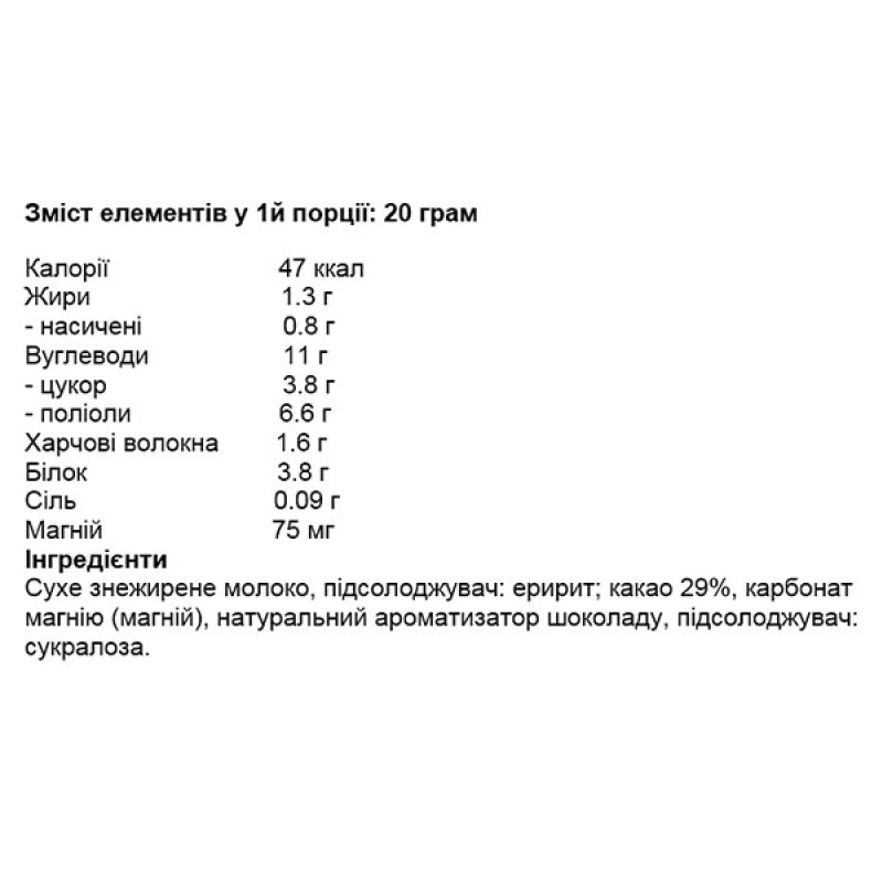- Подслащён эритритом и сукралозой, что делает его низкокалорийным и подходящим для контроля веса.
